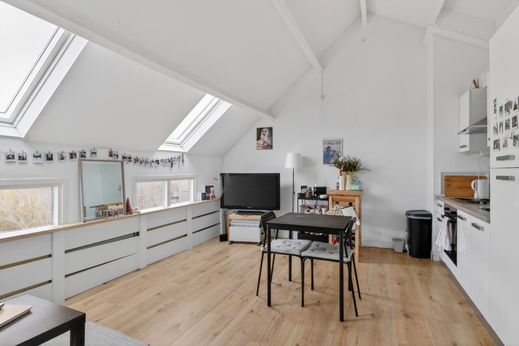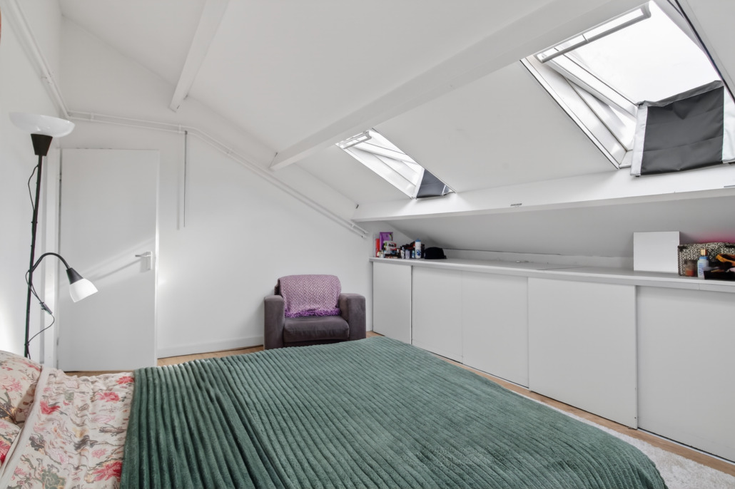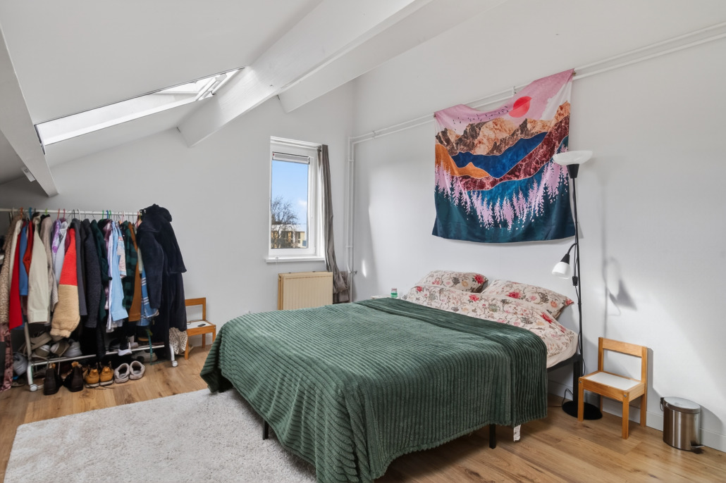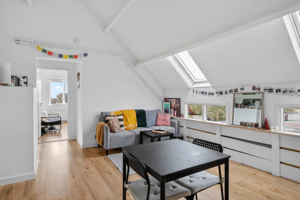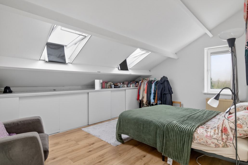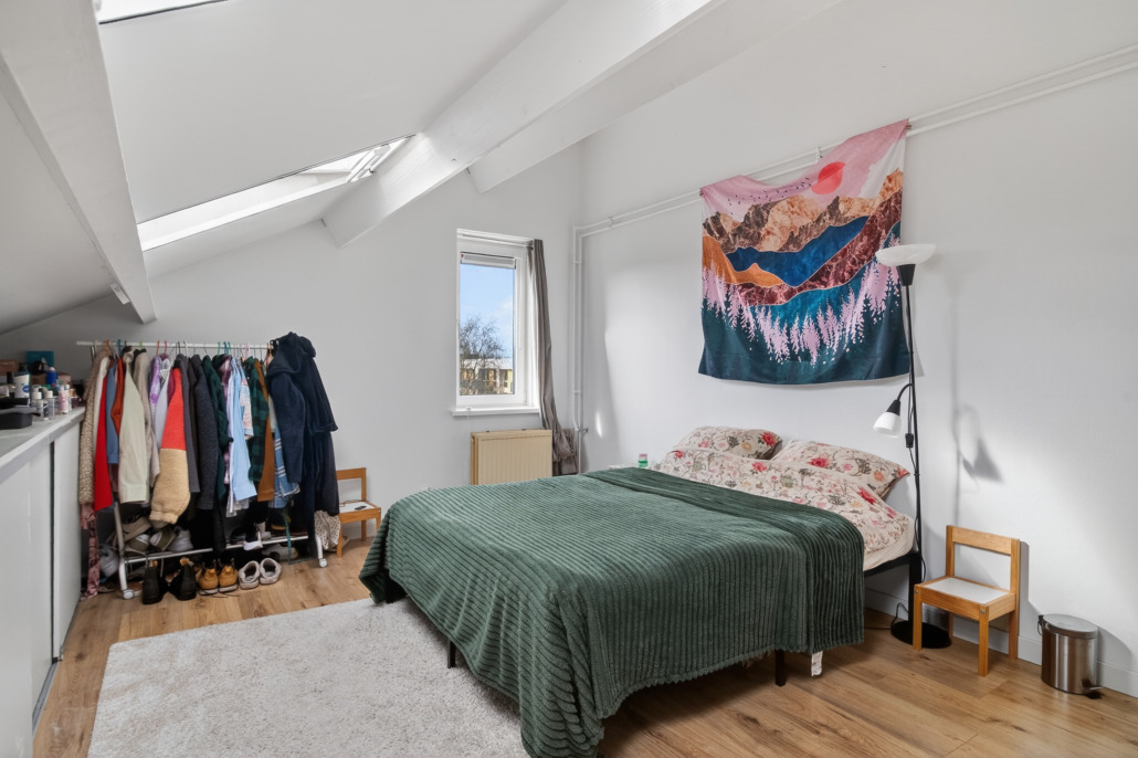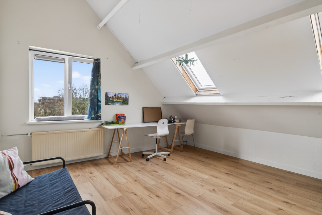 Het appartement beschikt daarnaast over twee zeer goed formaat slaapkamers, beide geschikt als volwaardige slaap-, werk- of kinderkamer en 1 met een wastafel. Het appartement heeft veel lichtinval door de meerdere dakramen en is v.v. een nette laminaatvloer.
